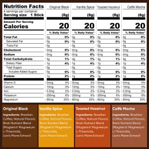 Meet the brews that started it all. Our Original Variety includes 16 instant coffee stick packs in four fan-favorite flavors: 4 Original Black. 4 Toasted Hazelnut. 4 Vanilla Spice. and 4 Caff?? Mocha. Whether you’re at home or on the go. each stick delivers bold flavor and smooth energy??no coffee shop required.